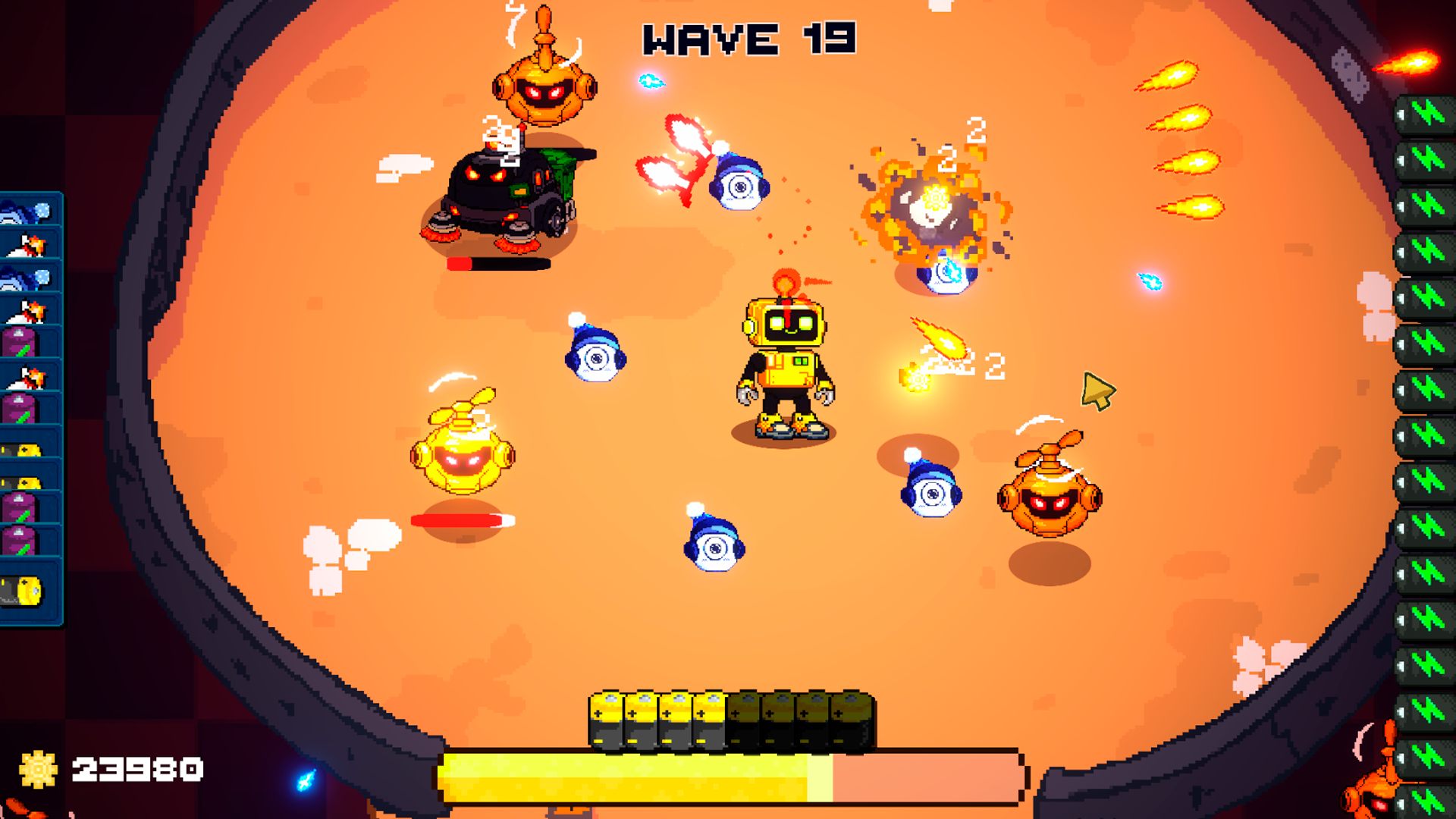Rob o Bot is a fast-paced survivors-like action game where you face hordes of robots that started acting on their own after a mysterious virus infected the new generation of machines. Fight through increasingly dangerous waves of enemies while collecting upgrades, evolving your equipment, and building powerful combinations to survive the chaos. Each run offers new possibilities and strategies. Choose your upgrades wisely, strengthen your arsenal, and see how long you can survive as the robotic threat grows stronger.